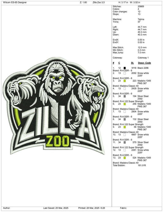 Zilla Zoo Embroidery Design Files - 3 Size's