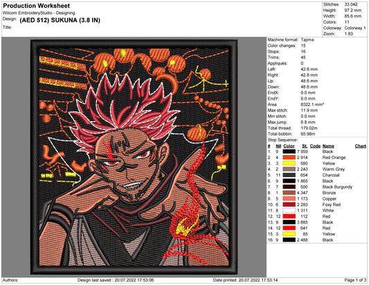 Ryomen Sukuna Embroidery Design Files - 4 Size's