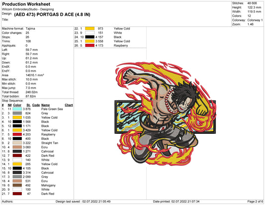 Portgas D Acev v2 Embroidery Design Files - 4 Size's
