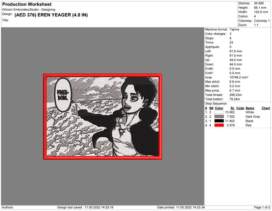 Eren Yeager v7 Embroidery Design Files - 4 Size's
