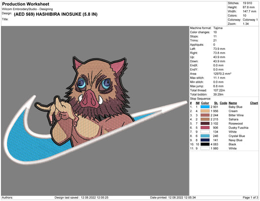 Inosuke Hashibira v3 Embroidery Design Files - 6 Size's
