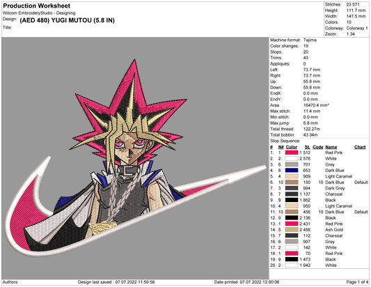Yugi Mutou Embroidery Design Files - 4 Size's