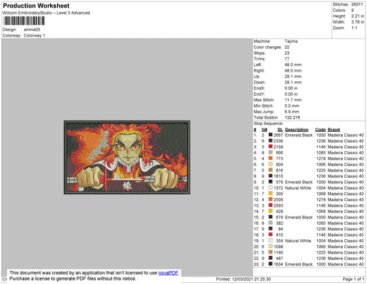 Kyojuro Rengoku v2 Embroidery Design Files - 4 Size's