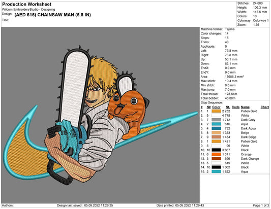 Denji Swoosh Embroidery Design Files - 4 Size's