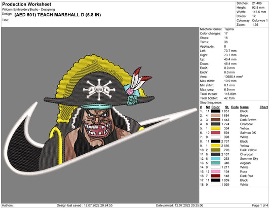 Blackbeard Swoosh Embroidery Design Files - 4 Size's