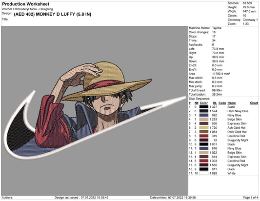 Monkey D Luffy Swoosh v6 Embroidery Design Files - 4 Size's