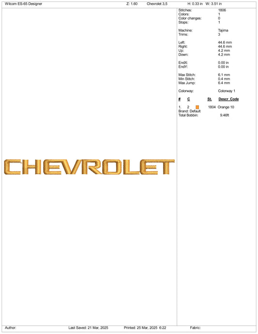 Chevrolet Logo Embroidery Design Files - 3 Size's