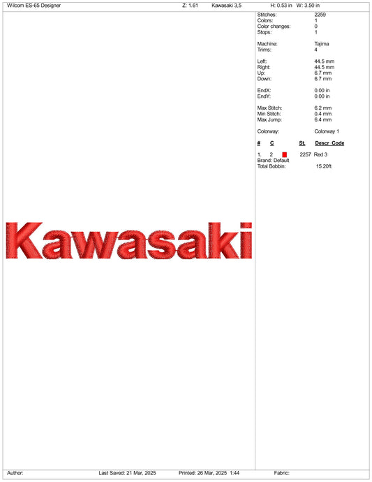 Kawasaki Logo Embroidery Design Files - 3 Size's