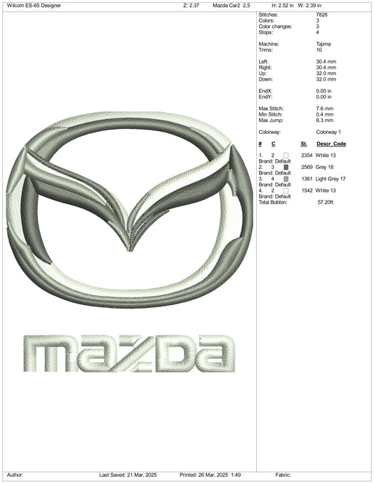 Mazda Logo v2 Embroidery Design Files - 3 Size's