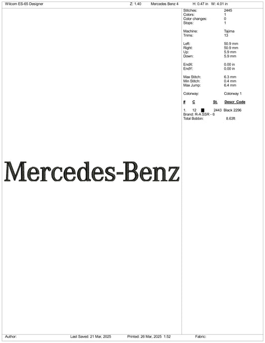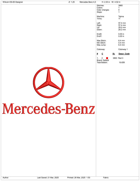 Mercedes Benz Logo Embroidery Design Files - 3 Size's