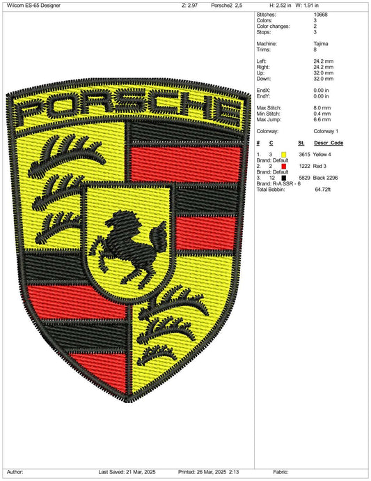 Porsche Logo v2 Embroidery Design Files - 3 Size's