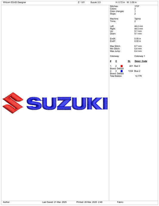 Suzuki Logo Embroidery Design Files - 3 Size's