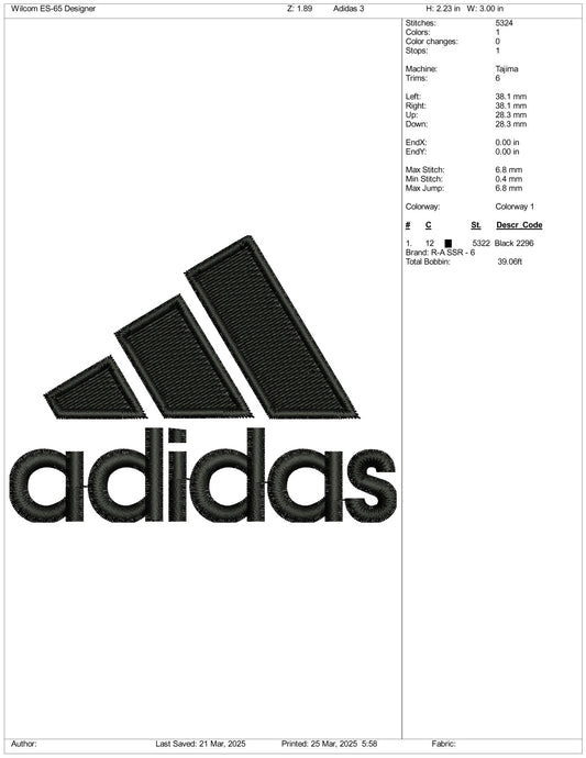 Adidas Logo v2 Embroidery Files - 3 Size's