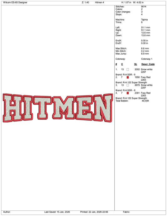 Hitmen Logo Embroidery Design Files - 5 Size's