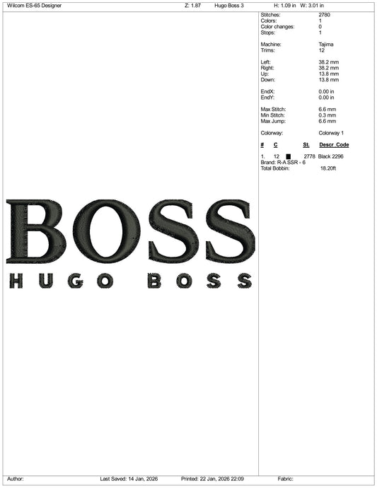 Hugo Boss Logo Embroidery Design Files - 3 Size's