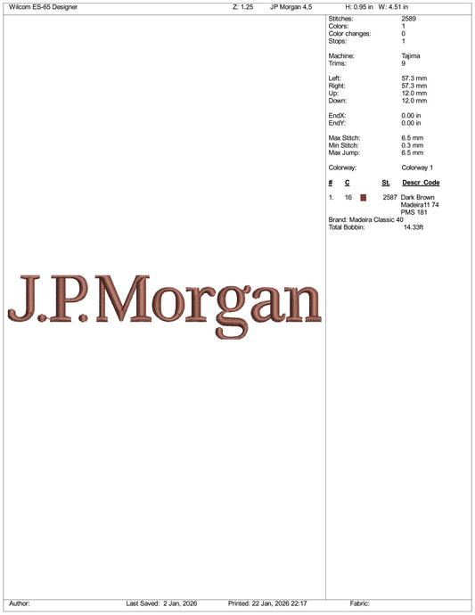 J.P Morgan Logo Embroidery Design Files - 4 Size's