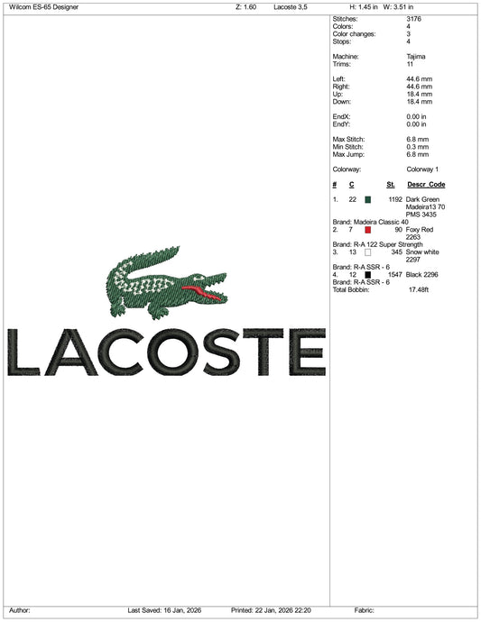Lacoste Logo Embroidery Design Files - 3 Size's