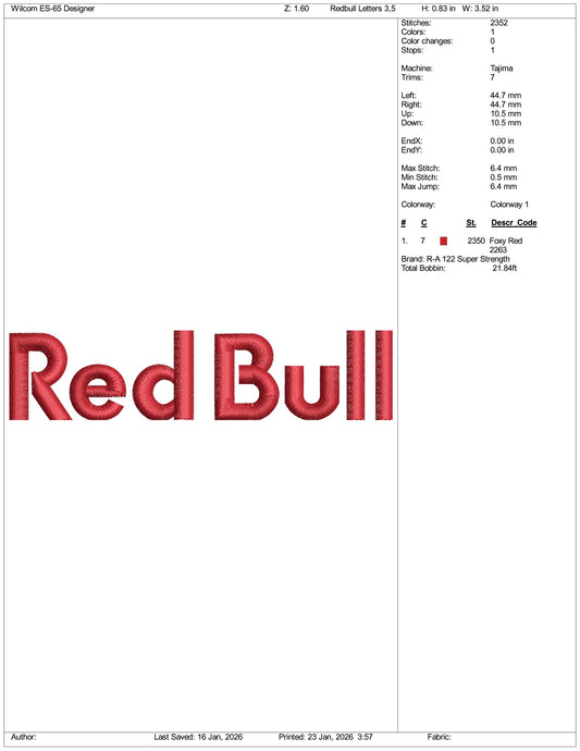 Red Bull Embroidery Design Files - 3 Size's