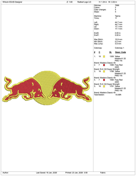Red Bull Logo v3 Embroidery Design Files - 6 Size's