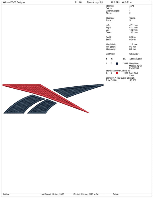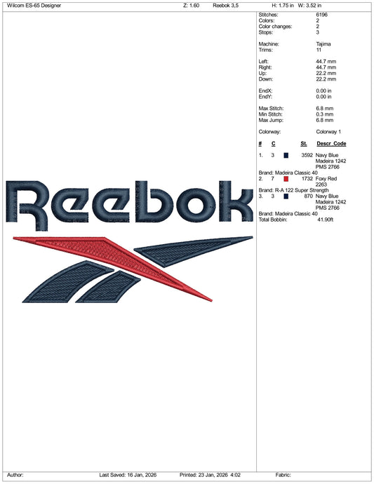 Reebok Logo v2 Embroidery Design Files - 3 Size's