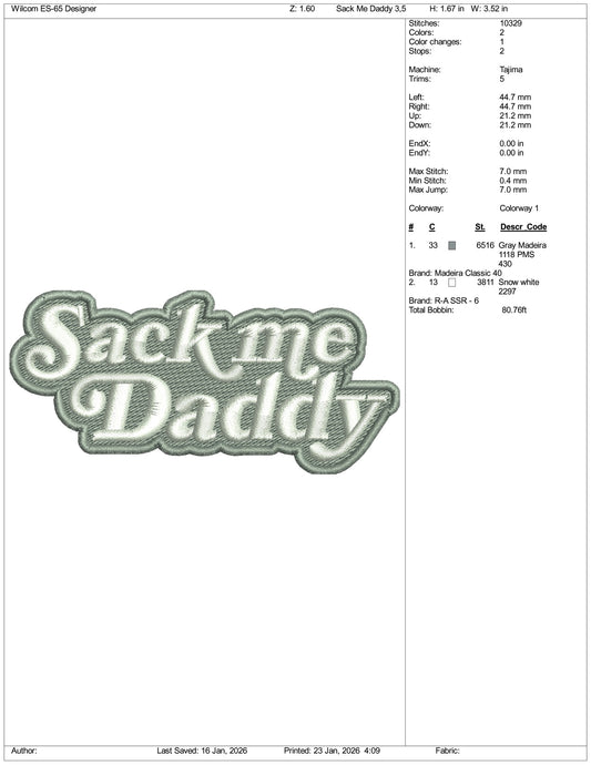 Sack Me Daddy Embroidery Design Files - 3 Size's