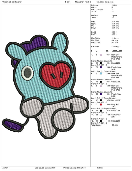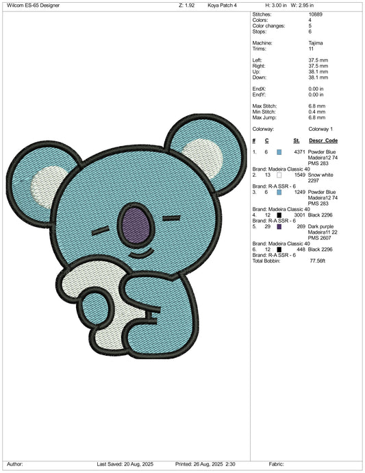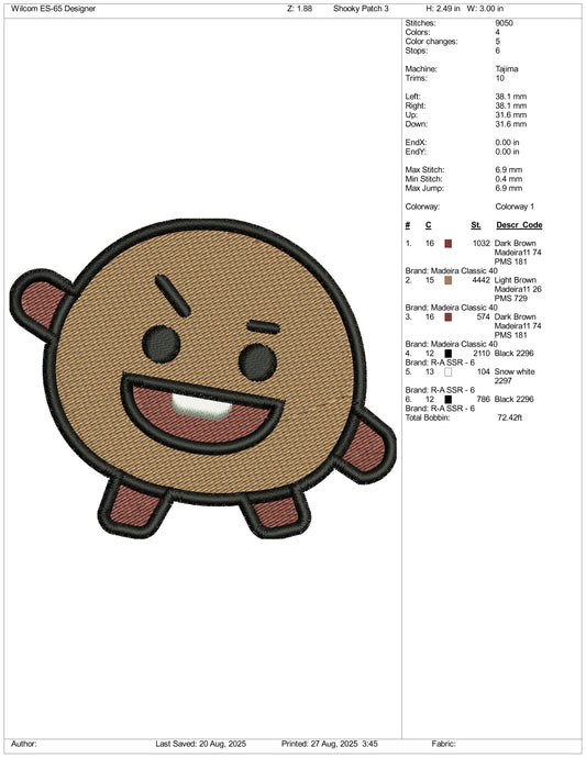 BT21 Shooky Embroidery Design Files - 3 Size's