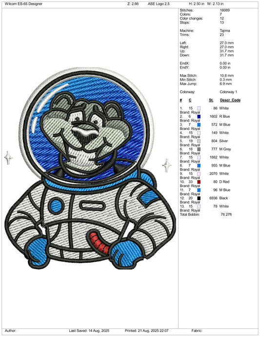Bear Astronaut Embroidery Design Files - 3 Size's