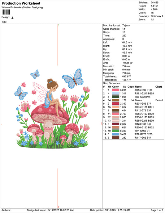 Fairy Sitting on Mushroom Embroidery Design Files - 9 Size's