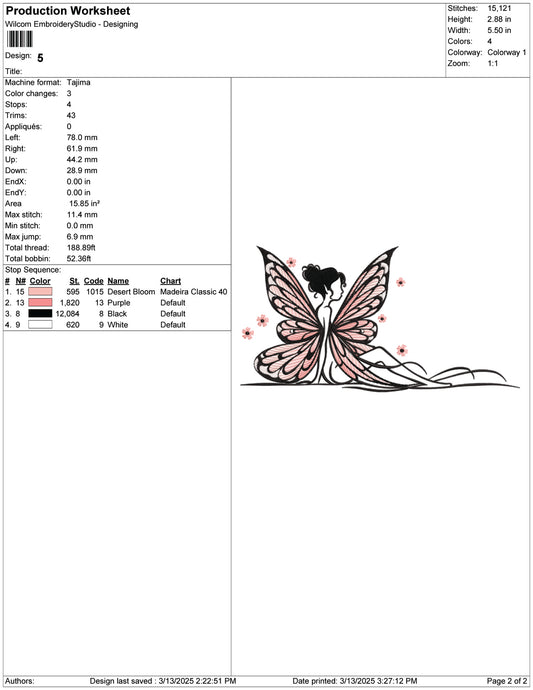 Fairy with Butterfly Wings Embroidery Design Files - 9 Size's