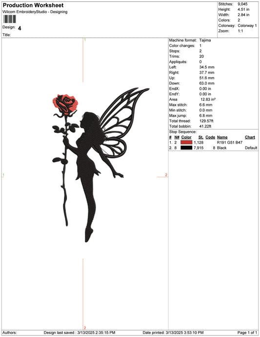 Fairy with a Rose Embroidery Design Files - 9 Size's