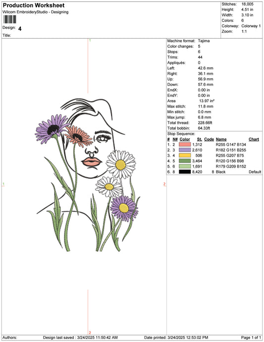 Floral Lady Embroidery Design Files - 9 Size's