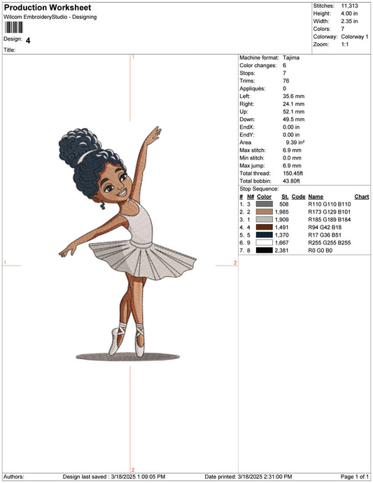 Graceful Little Ballerina Embroidery Design Files - 9 Size's