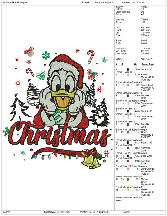 Donald Duck Christmas Embroidery Design Files - 3 Size's