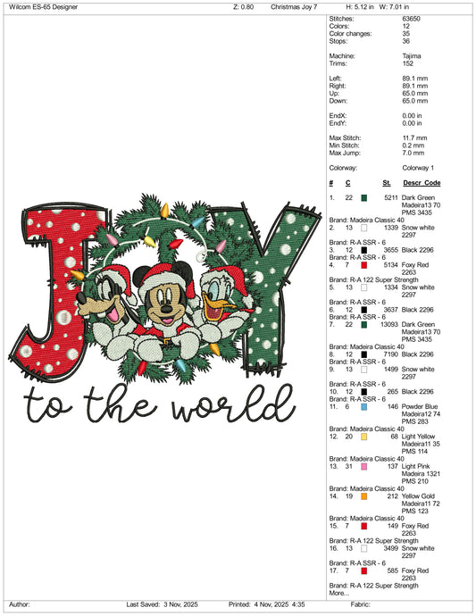 Mickey Mouse Joy To The World Embroidery Design Files - 3 Size's