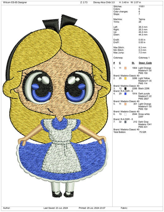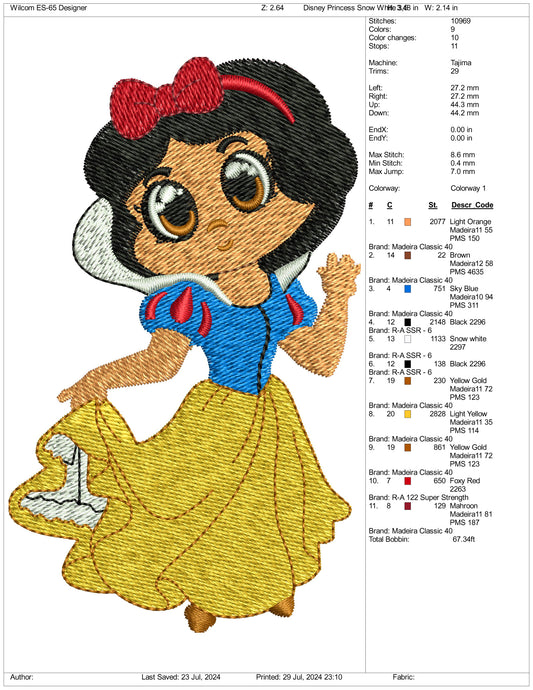 Chibi Snow White Embroidery Design Files - 3 Size's