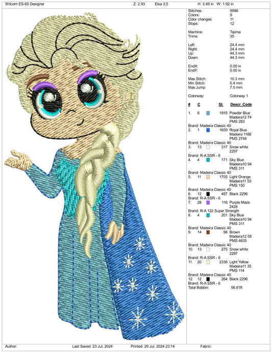 Chibi Elsa Embroidery Design Files - 3 Size's