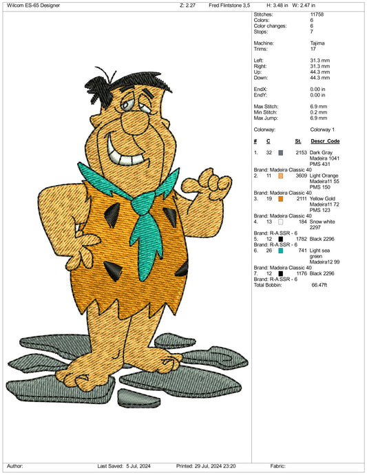 Fred Flintstone Embroidery Design Files - 3 Size's