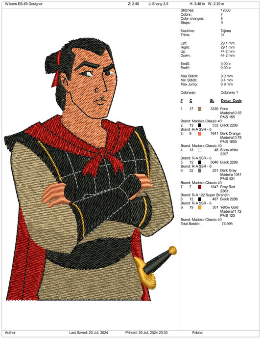 Li Shang v1 Embroidery Design Files - 3 Size's