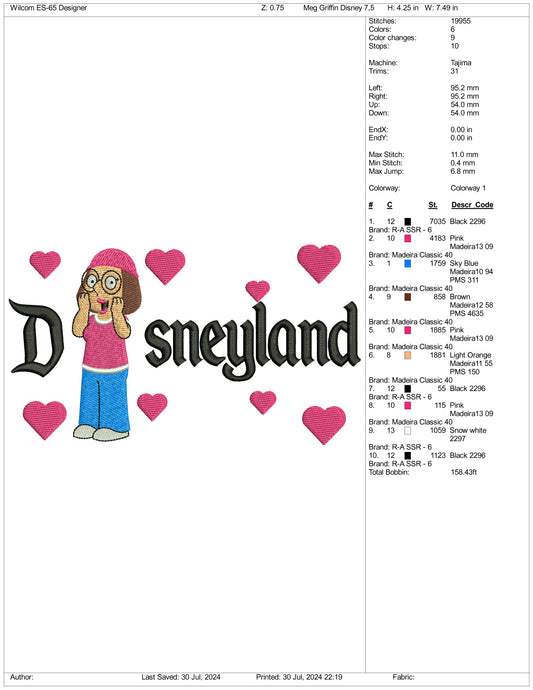 Meg Griffin Disneyland Embroidery Design Files - 3 Size's