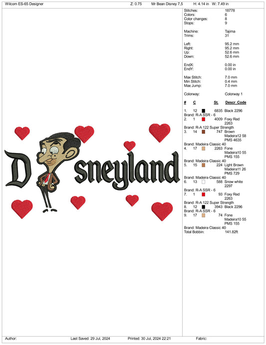 Junior Mr Bean Disneyland Embroidery Design Files - 3 Size's