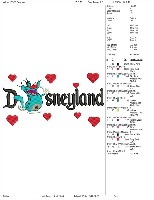 Oggy Disneyland Embroidery Design Files - 3 Size's