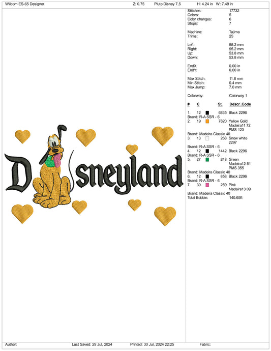 Pluto Disneyland Embroidery Design Files - 3 Size's
