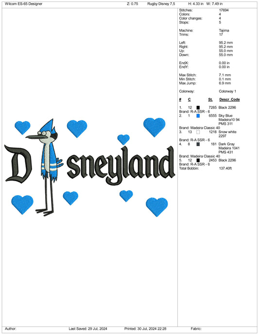 Mordecai Disneyland Embroidery Design Files - 3 Size's