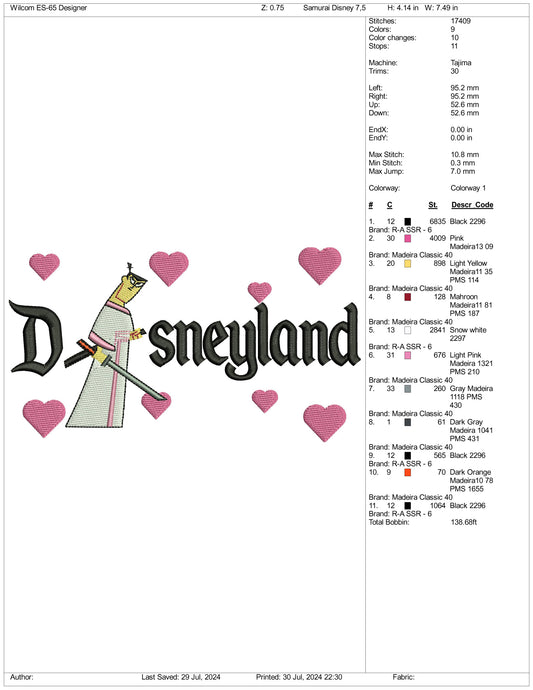 Queen La Disneyland Embroidery Design Files - 3 Size's