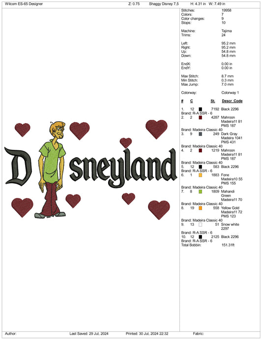 Shaggy Rogers Disneyland Embroidery Design Files - 3 Size's