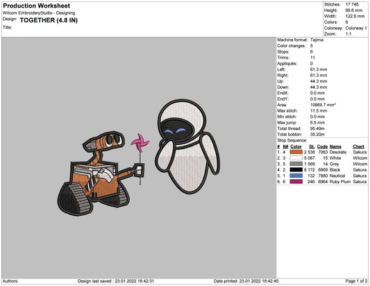 Wall-E & Eva Embroidery Design Files - 4 Size's