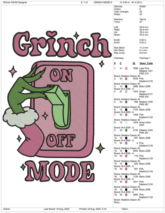 Grinch Mode Embroidery Files - 3 Size's