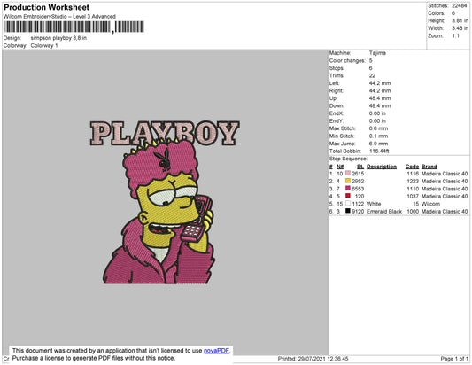 Simpson Bart Playboy Embroidery Design Files - 4 Size's