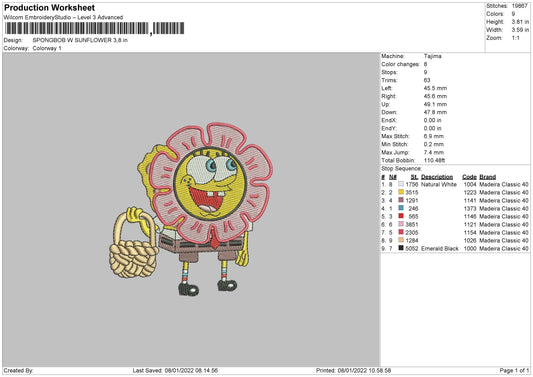 Spongbob Sunflower Embroidery Design Files - 4 Size's