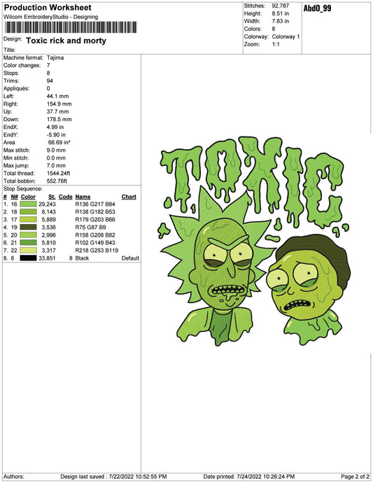 Toxic Rick and Morty Embroidery Design Files - 4 Size's
